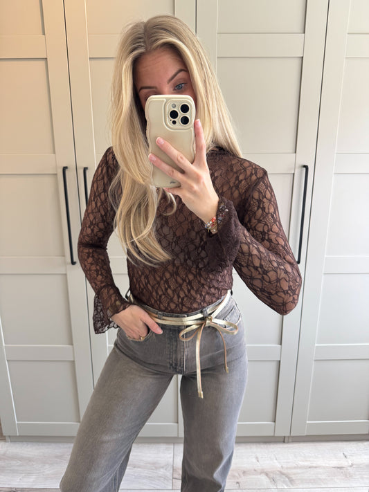 Mesh top | Glitter | Donkerbruin