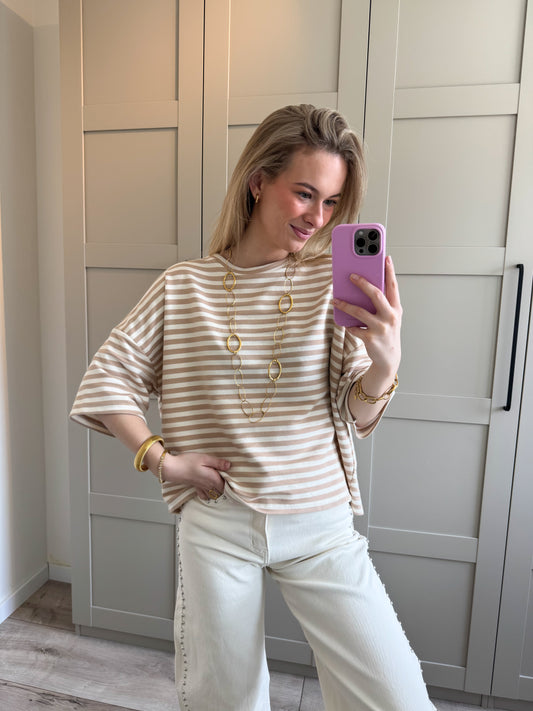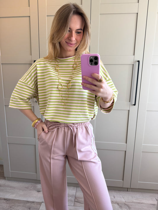 Oversized T-shirt | Stripes | Matcha lichtroze