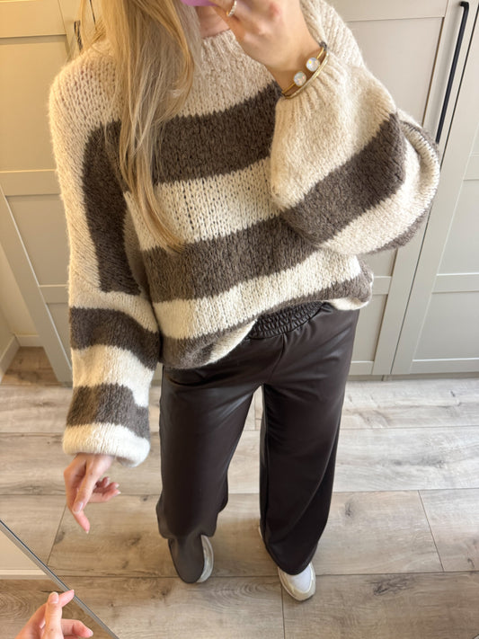 UitverkochtTrui | Gina | Ecru taupe gestreept
