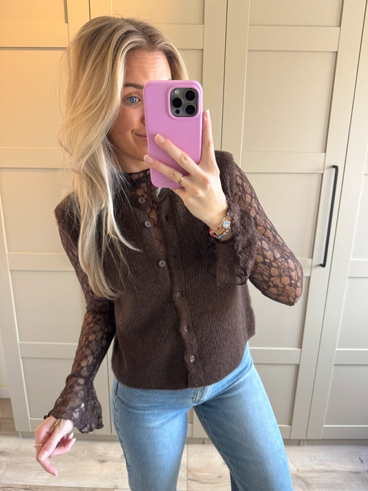 Mesh top | Glitter | Donkerbruin