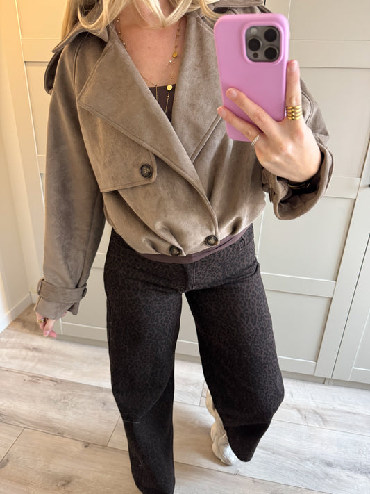 UitverkochtSuede oversized jacket | Haily | Taupe