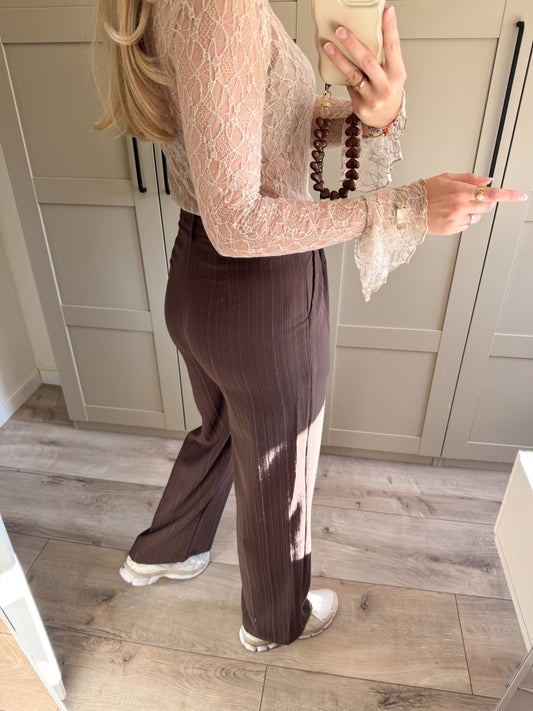 UitverkochtPantalon | Venna | Bruin beige streep