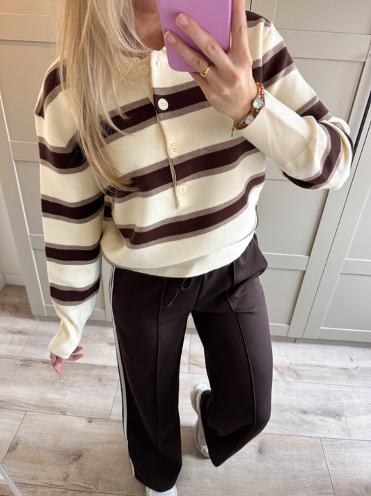 UitverkochtFitted longsleeve | Stripes | Creme bruin