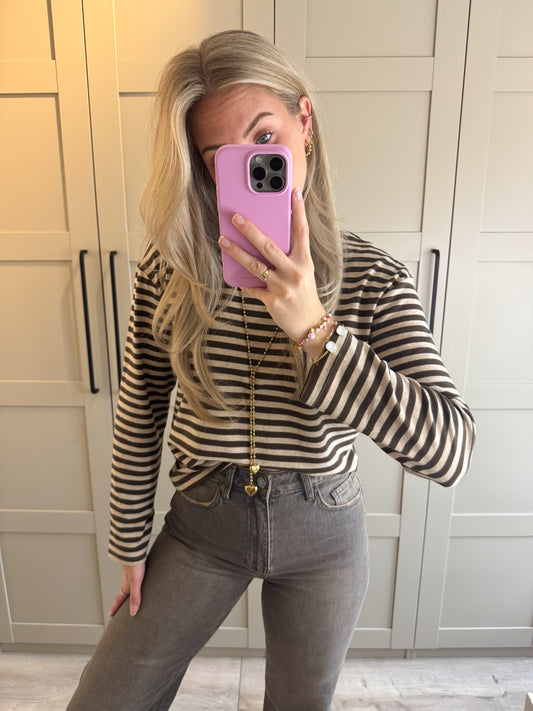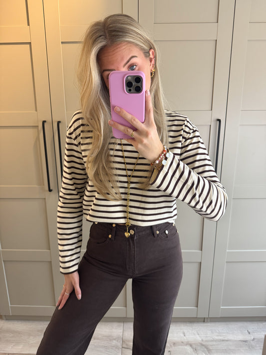 UitverkochtFitted longsleeve | Stripes | Creme bruin