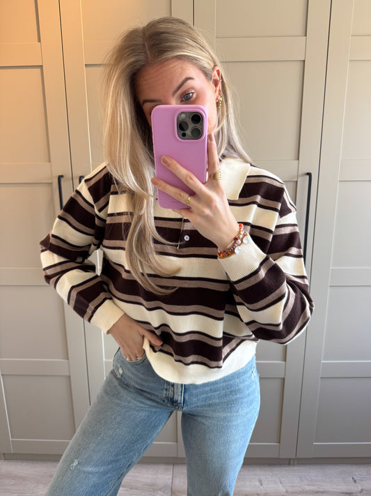 UitverkochtTrui | Gina | Ecru taupe gestreept