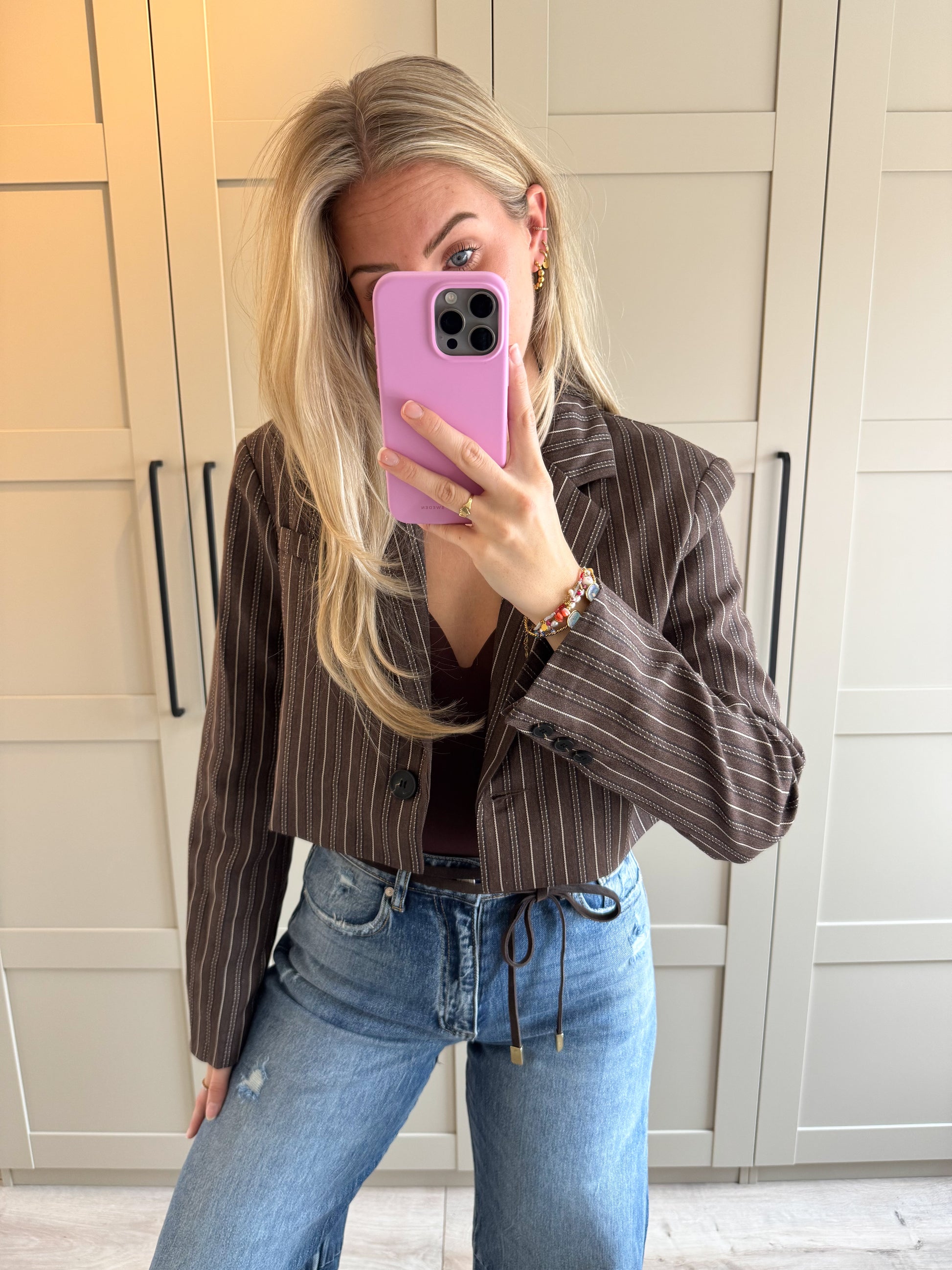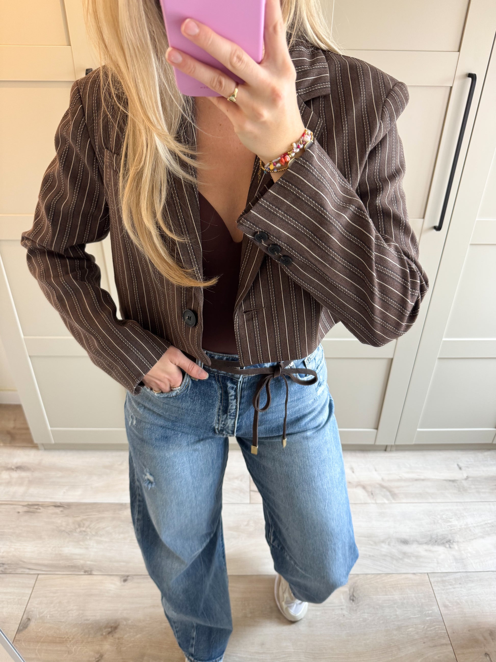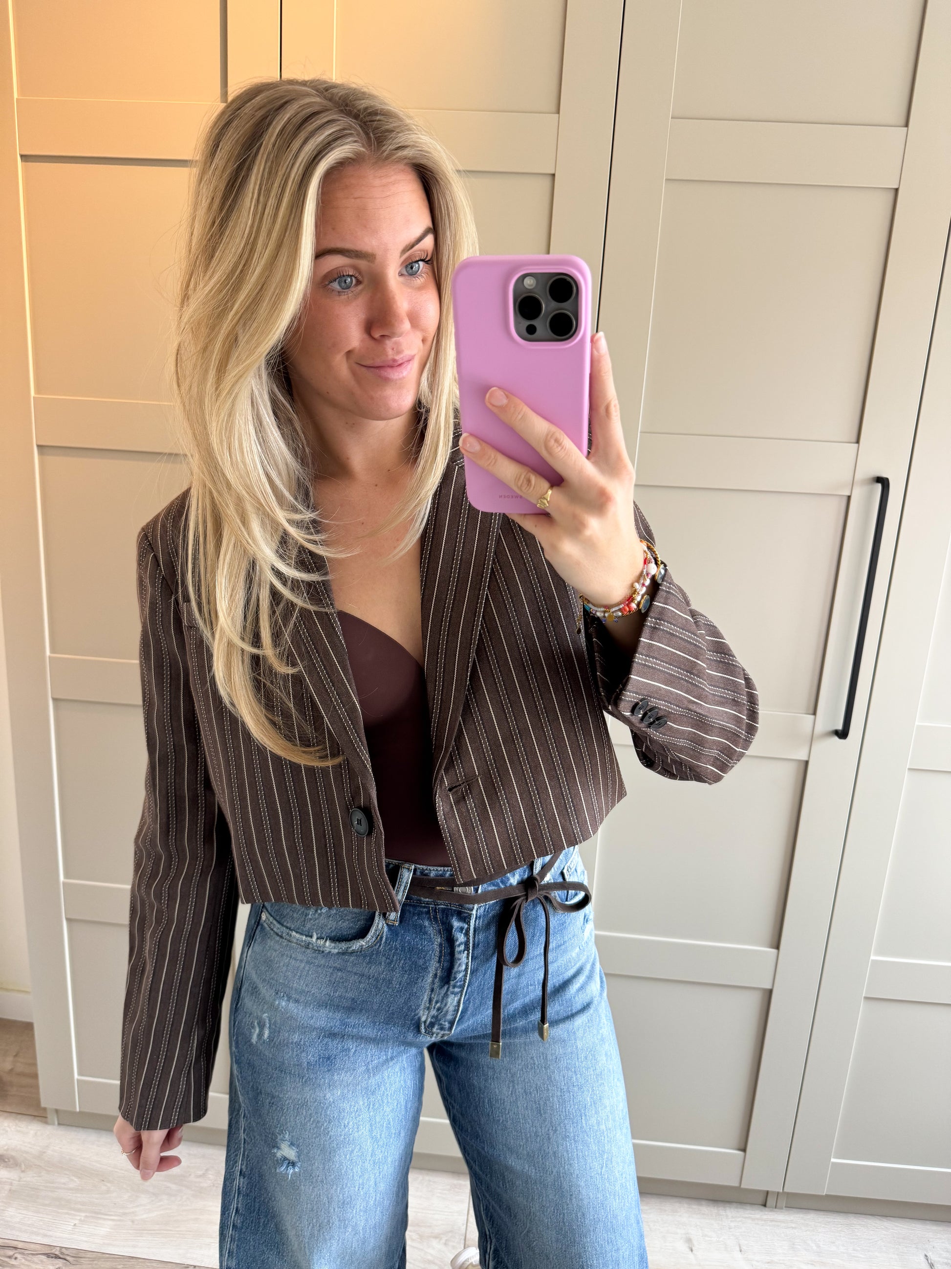 Deze cropt blazer is van een mooie stevige kwaliteit en bevat schoudervullingen.