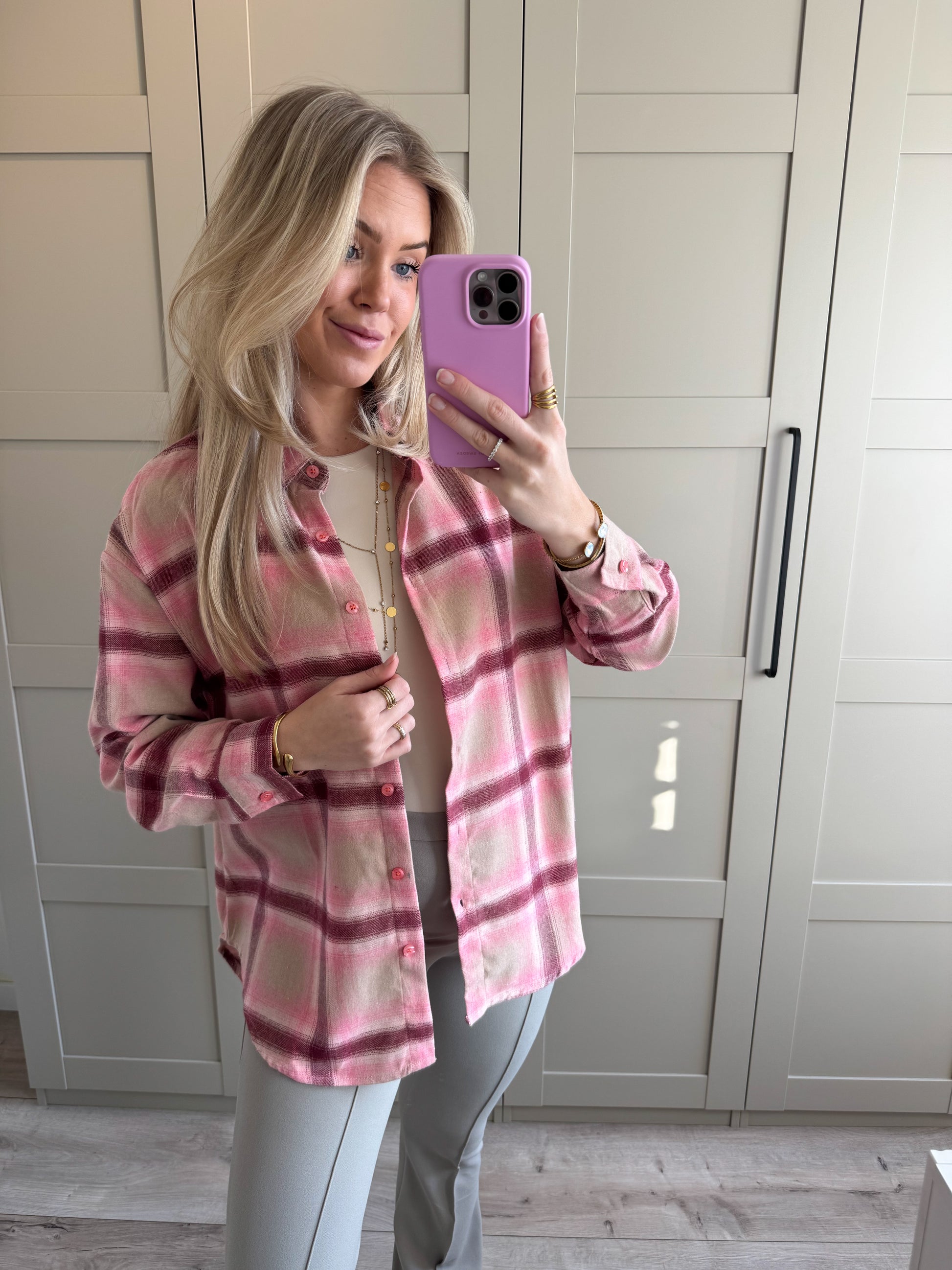 Blouse | Elise | Roze beige geruit