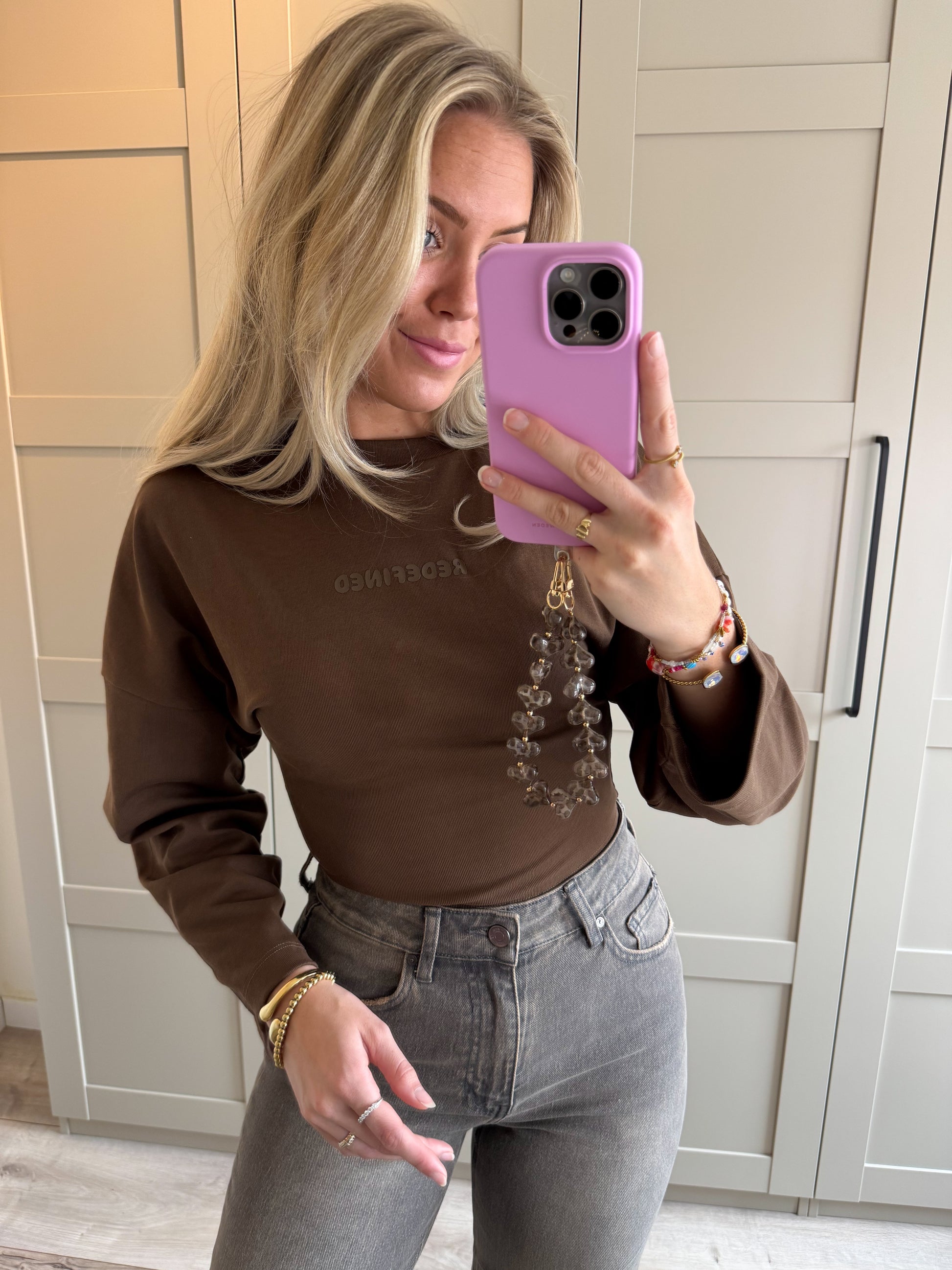 Deze longsleeve is aansluitend in de taille en is oversized aan de bovenkant. Het T-shirt bevat veel stretch.