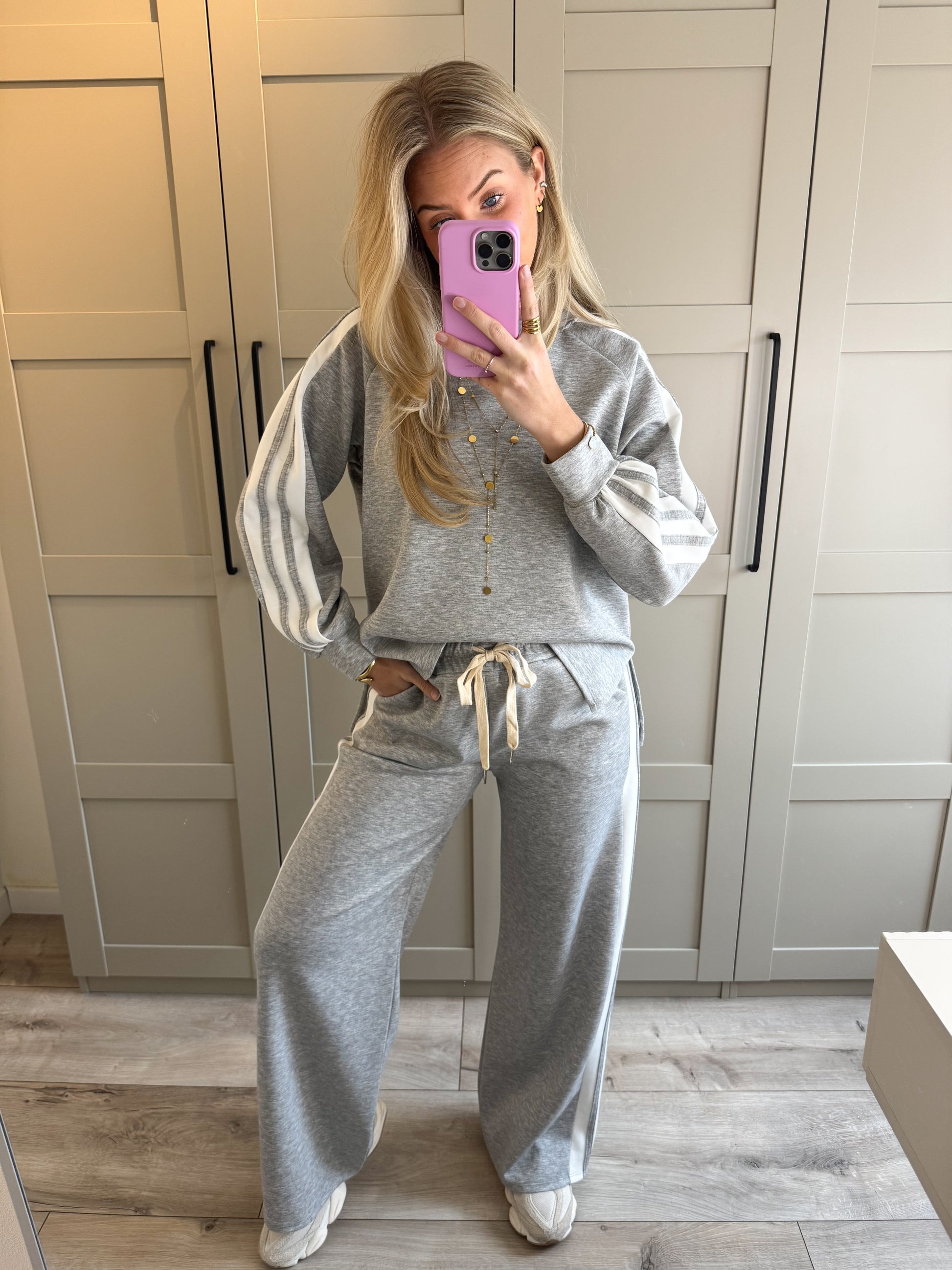 Tweedelige set, oversized sweater en een wijde broek. De stof bevat veel stretch!
