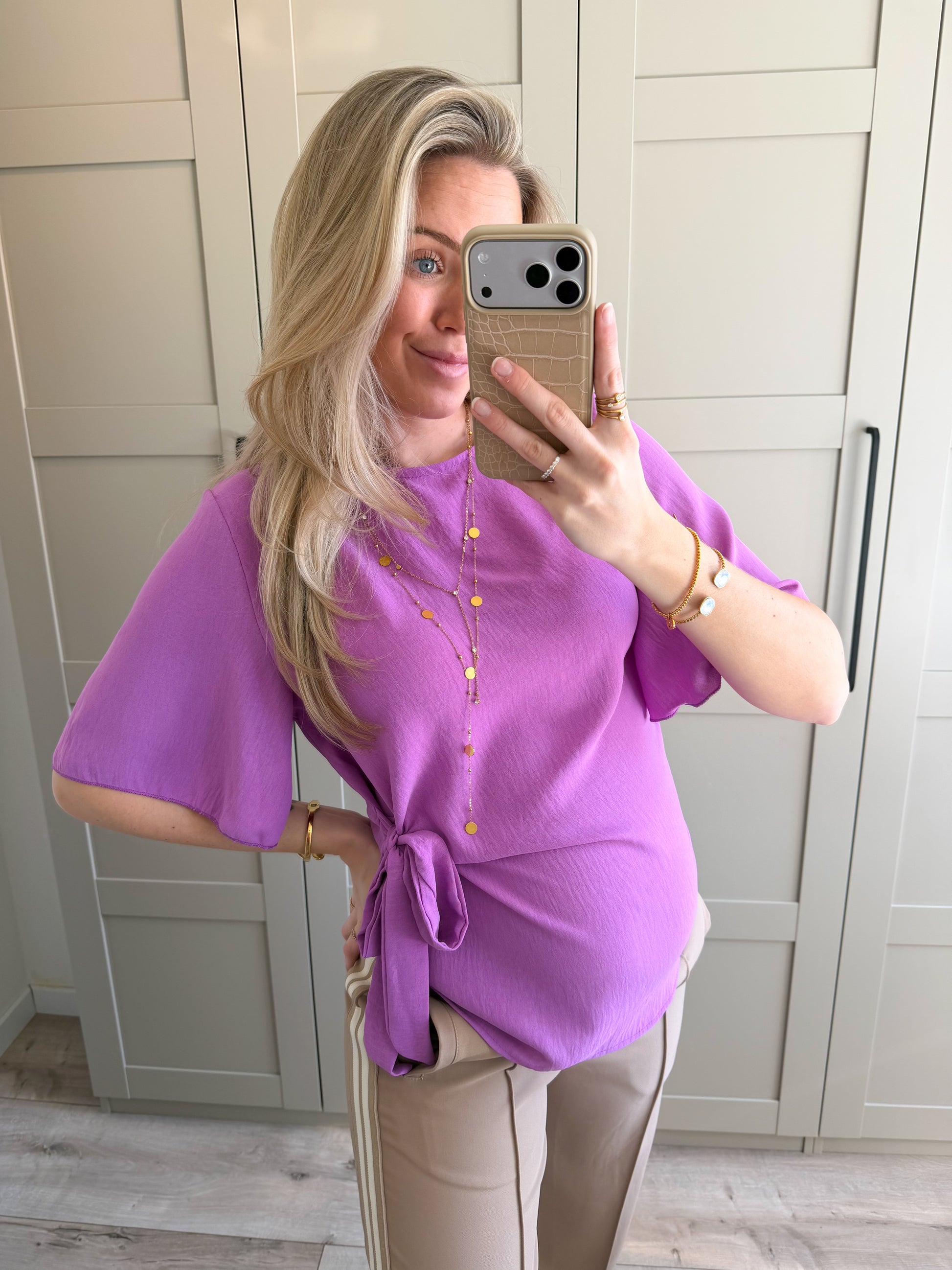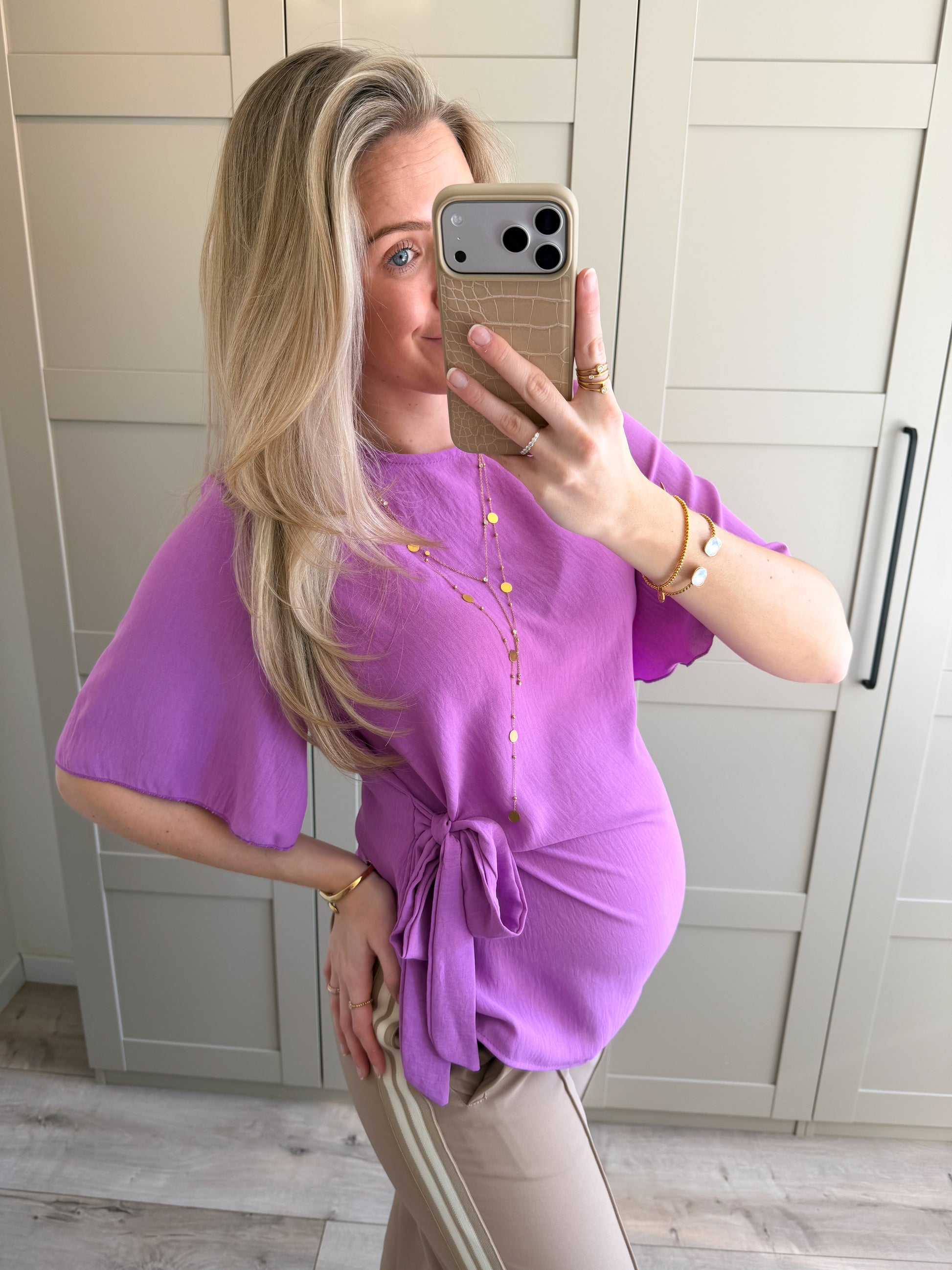 Deze top is gemaakt van een luchtige stof en bevat veel stretch. De top heeft een wijdere fit en valt wat langer in lengte.