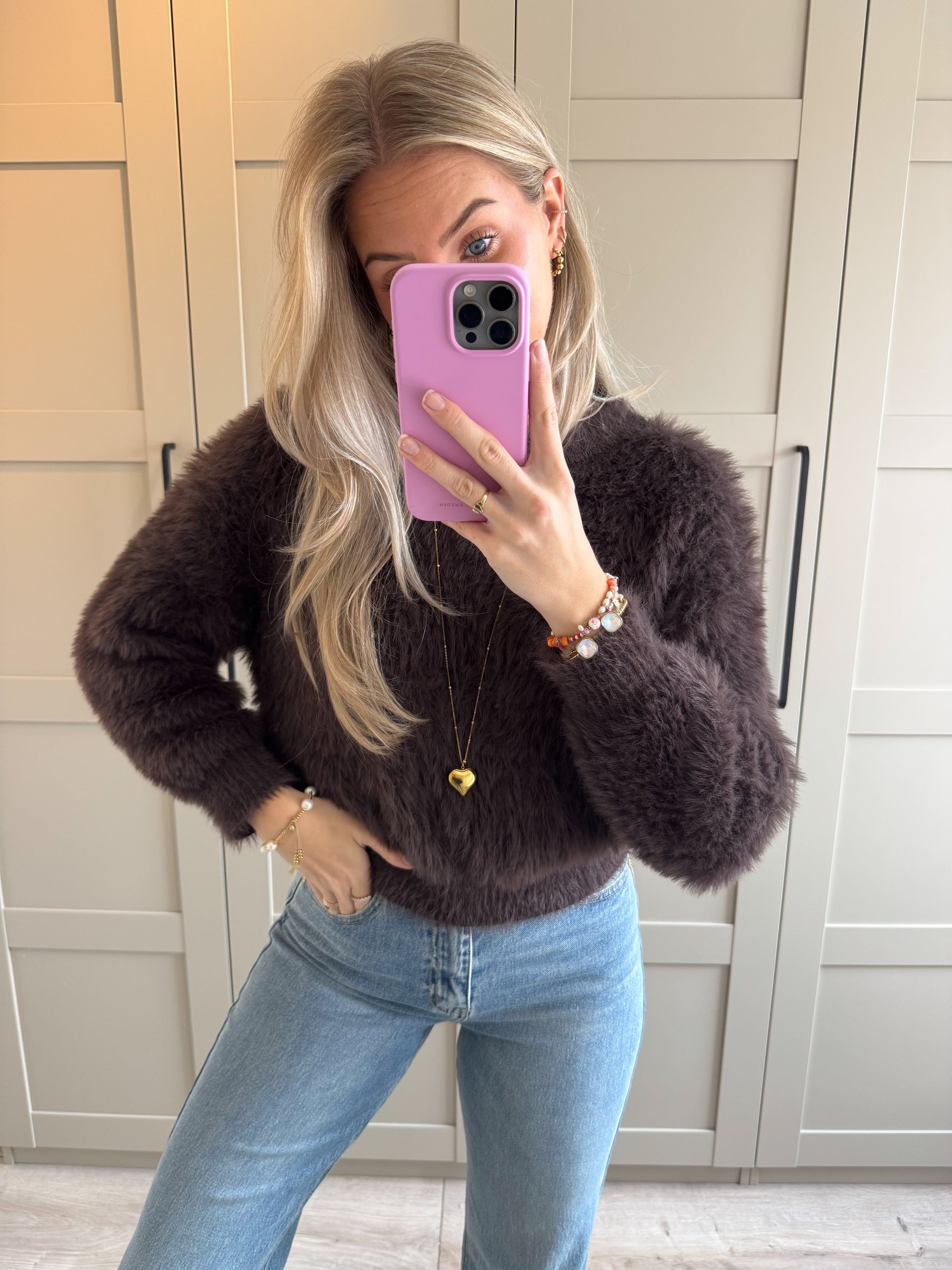 Deze trui is ontzettend zacht! Het model is korter in de lengte.