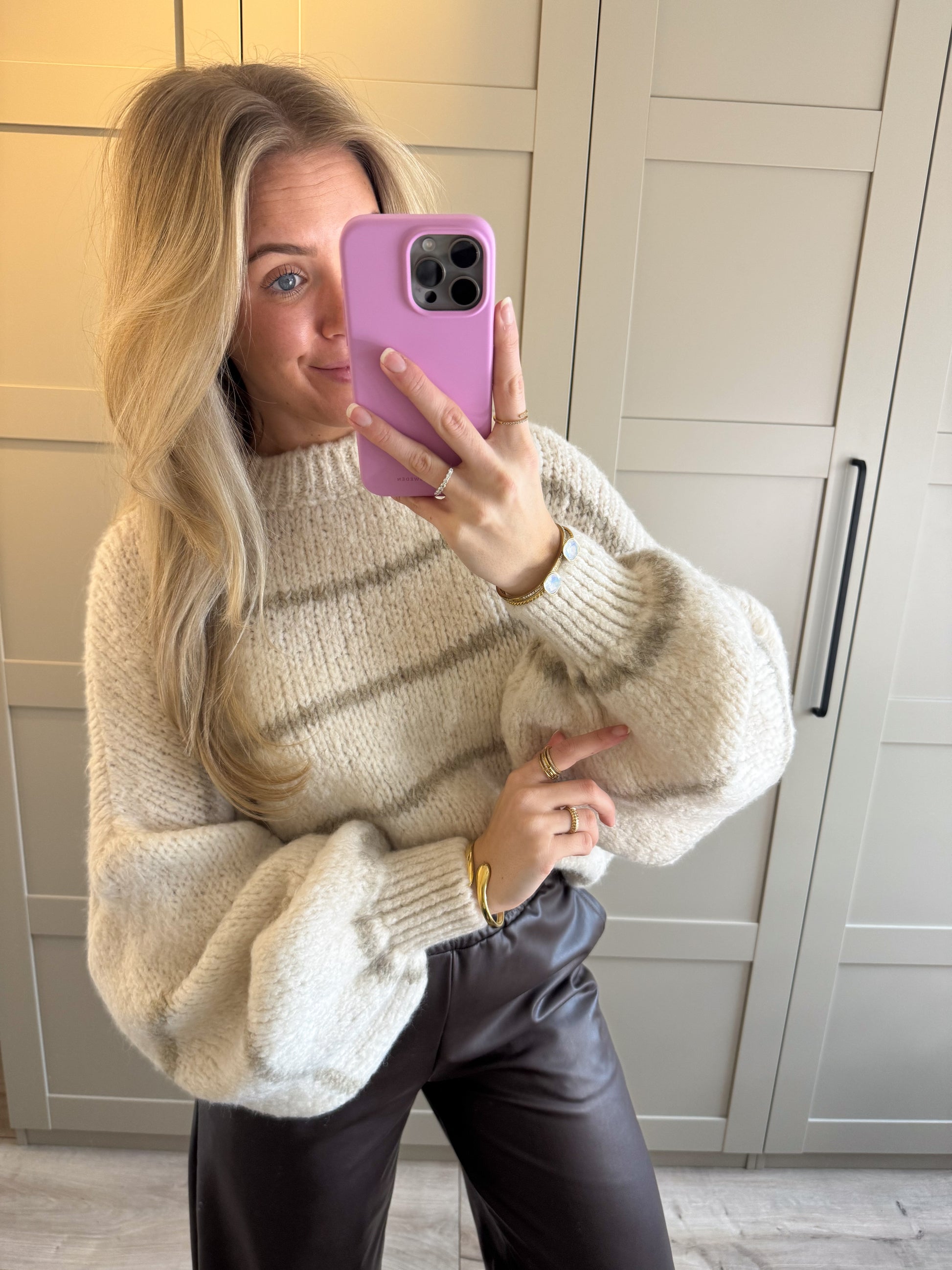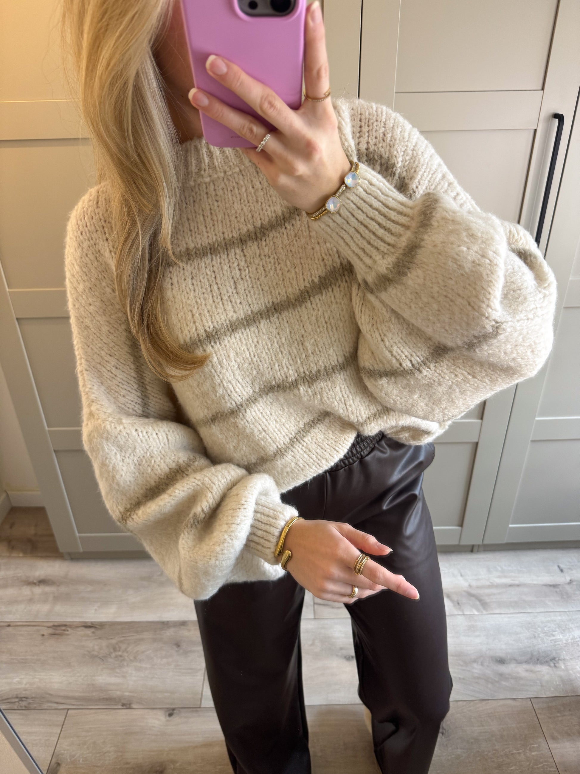 Trui | Gina | Ecru beige gestreept