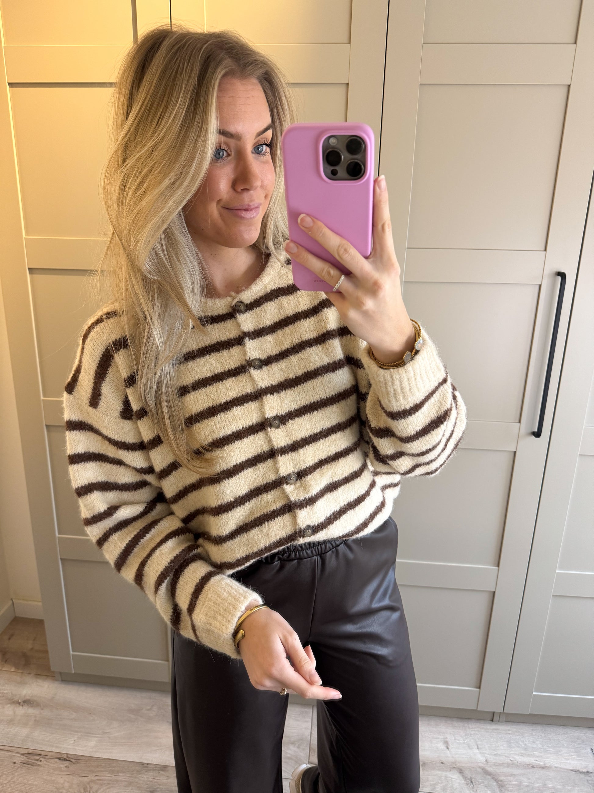 Vest | Noa | Ecru bruin streep