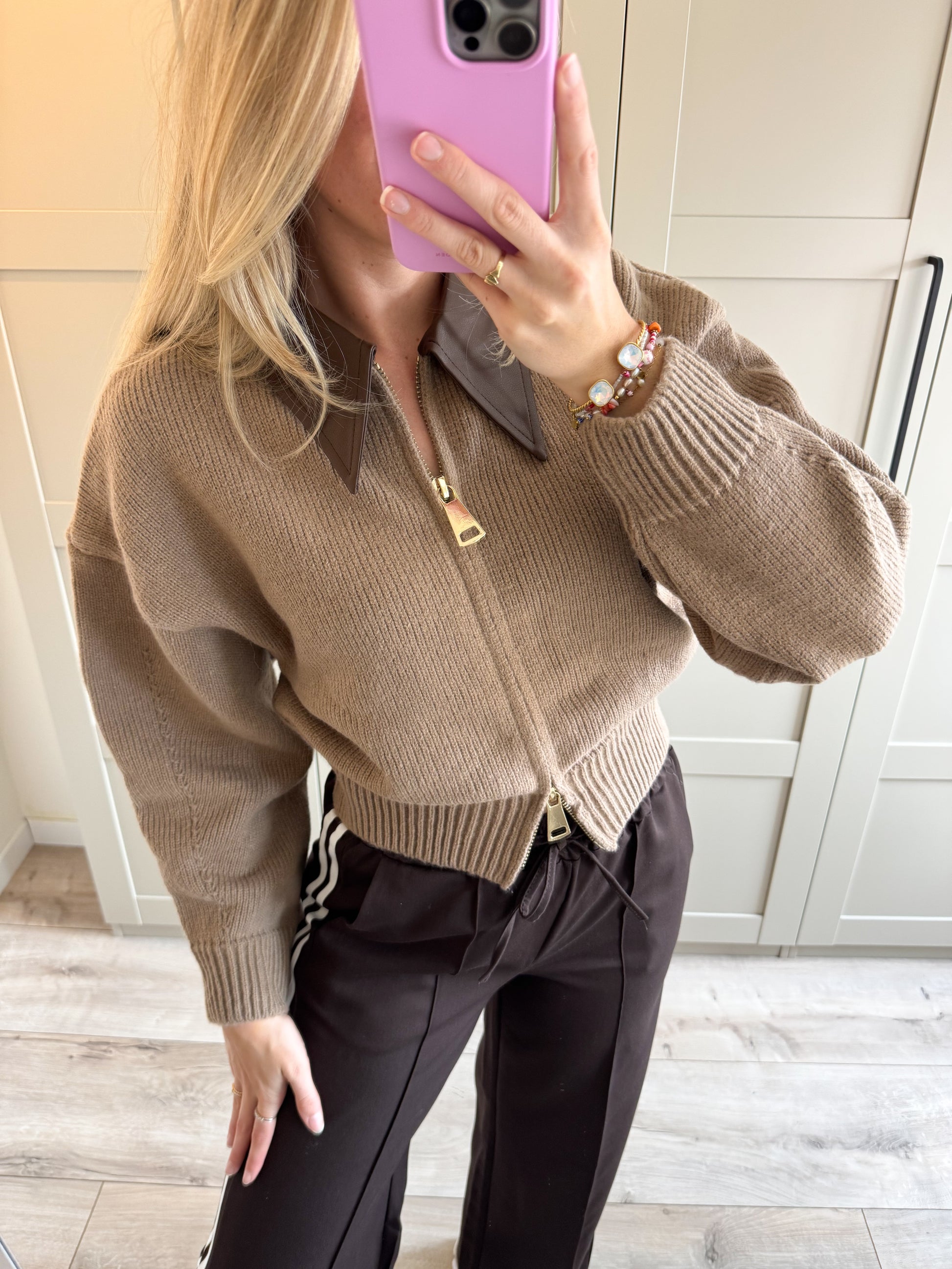 Deze trui heeft een goudkleurige rits die zowel aan de onderkant als de bovenkant open en dicht geritst kan worden. Bevat een faux ledere kraag. De trui kriebelt niet.